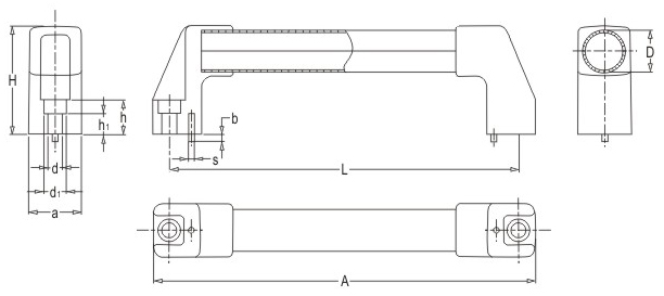 JS.104007 不銹鋼方拉手 顏色:銀色 材質(zhì):不銹鋼管+鋅鋁合金、增強(qiáng)尼龍 用途:適用于各類數(shù)控機(jī)械防護(hù)門 特性:啞光飾面、外形美觀、機(jī)械強(qiáng)度高、堅固耐用、標(biāo)準(zhǔn)化使用、安裝簡便