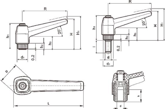 特性:手柄體部分可以垂直拉起,并沿裝配軸旋轉至其他角度后落下,從而讓使用者在增加杠桿扭力的同時,方便?课恢,更加有力的調整操作