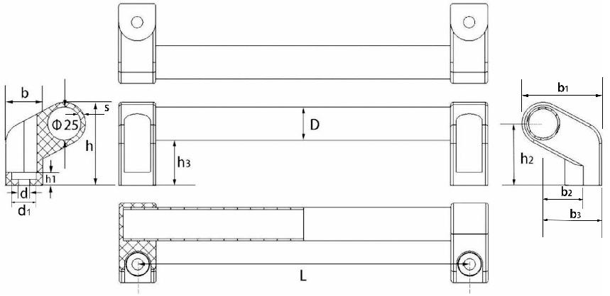 JS.104016 Square end aluminum tube diagonal handle |